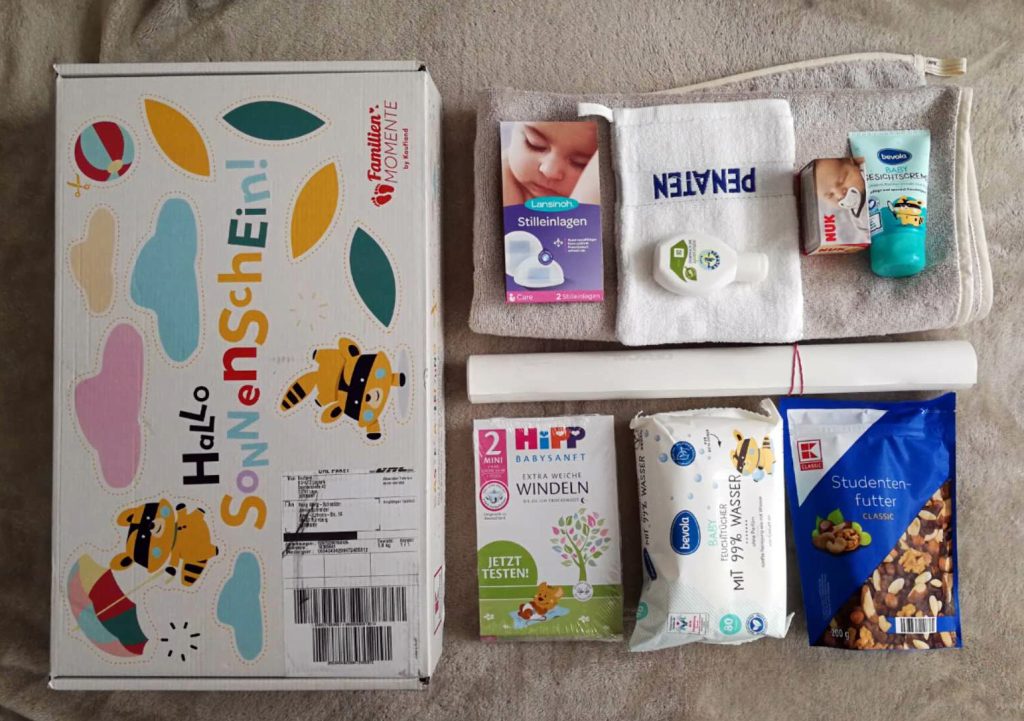 Die gezeigten Fotos stammen von meiner Freundin und zeigen nicht Geschenke, die ich persönlich erhalten habe. Dennoch gehört dieses Paket nach ihren Erfahrungen zu den größten kostenlosen Baby-Willkommensgeschenken in Deutschland.
